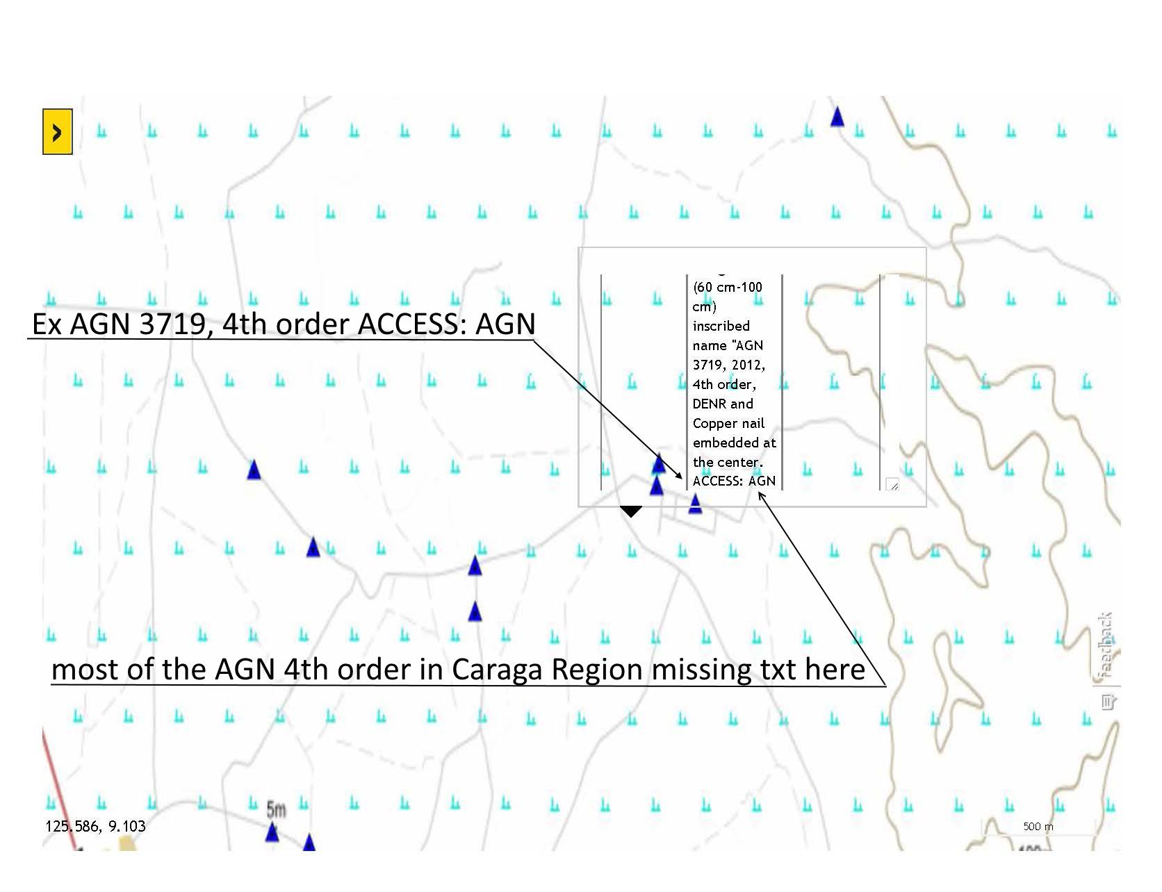 the description location of the control point not complete, ex. AGN-3727 STA. MARK: AGN 3727 is a quadrilateral concrete monument 20cm x 20 cm x 100 cm with variable depth set on the ground (60 cm-100 cm) inscribed name "AGN 3727, 2012, 4th order, DENR and Copper nail embedded at the center. ACCESS: AGN 3727 is? not complete here? please check